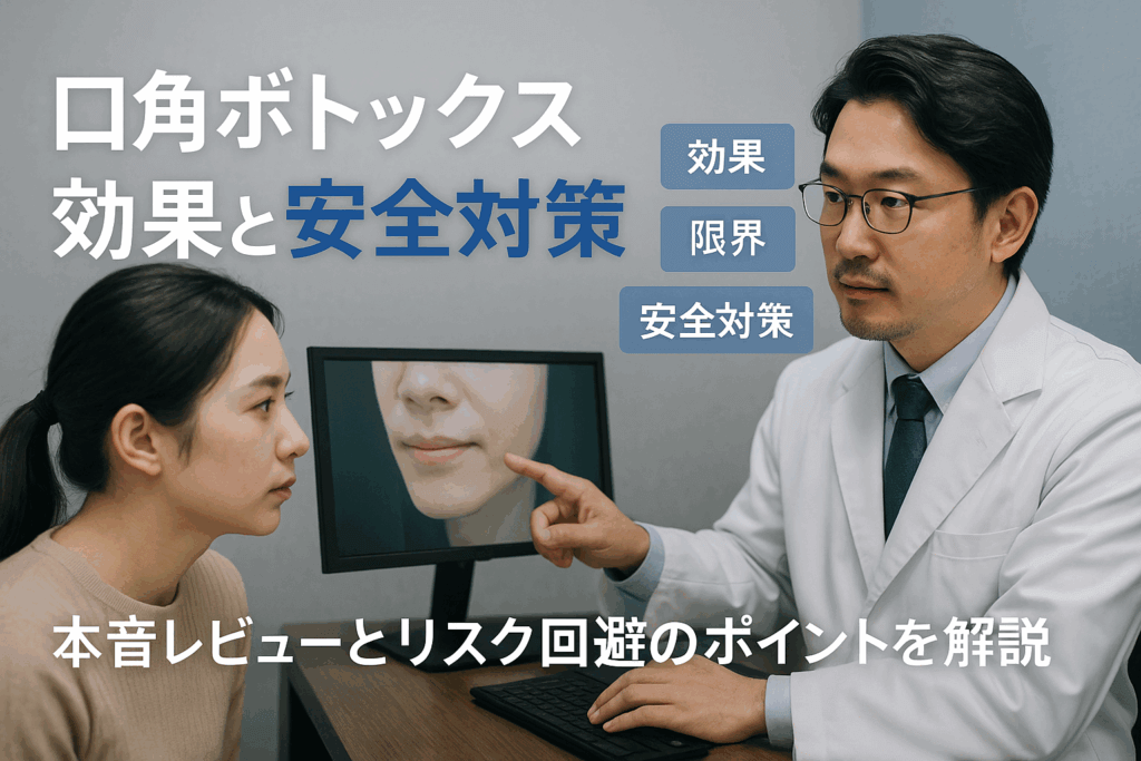 不自然さの主因は、注入量が多すぎる、注入部位がずれる、左右差の見逃しの三つです。口角を下げる口角下制筋だけでなく、口輪筋や大頬骨筋など周辺の表情筋バランスも影響します。防ぐコツは、笑顔・発話時の動きを診た上で最小有効量から段階的に追加すること、左右差を前提に微量調整すること、既往の注射歴やほうれい線・マリオネットラインの出方を併せて評価することです。施術前には、望む印象(きりっと上げたい、自然重視など)を言語化し、表情時の写真を見せると齟齬を回避しやすくなります。過去に口角ボトックス失敗や後悔がある場合は、効果が切れるのを待つか部分的なリバース(調整注射)の可否を相談してください。