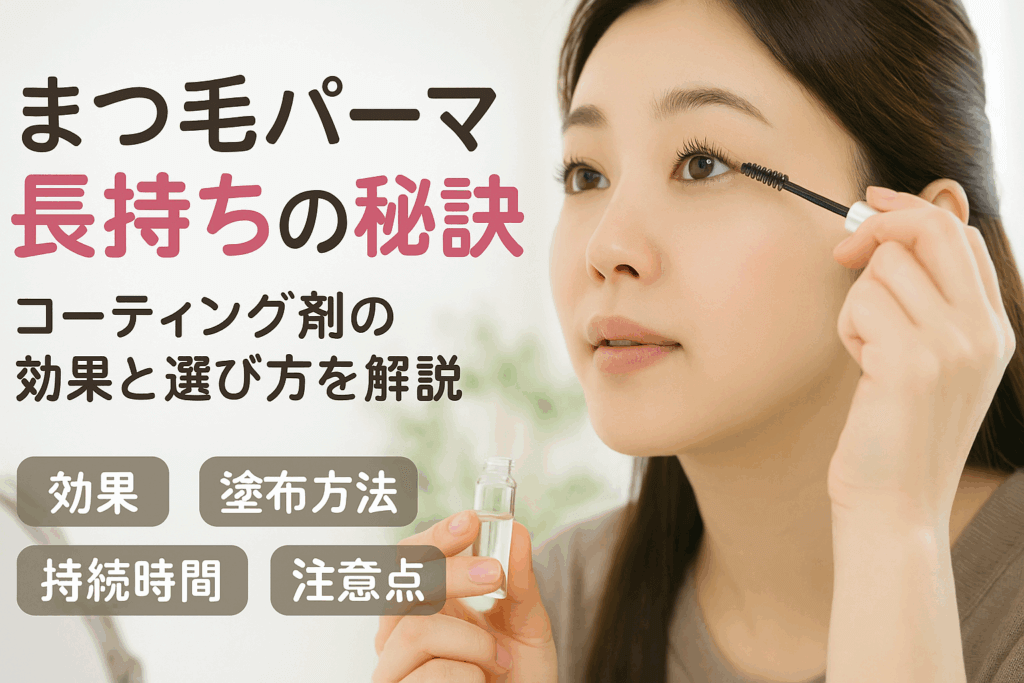 補足として、まつ毛パーマコーティング剤はフィルムで保護するため、仕上がりの持続とメイクの崩れにくさが上がります。