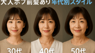 Glossivie Blog 大人髪型ボブに前髪ありの人気スタイル30代40代50代別アレンジ徹底解説 鏡の前で「そろそろ新しい髪型に挑戦したい」と感じたことはありませんか?とくに【40代~60代】の女性の約74%が、「年齢とともに髪のボリュームやツヤが減少し、どんな髪型が自分に合うのか分からない」という悩みを持っています。そんな悩みを解決す... 2025.09.25 Glossivie Blog